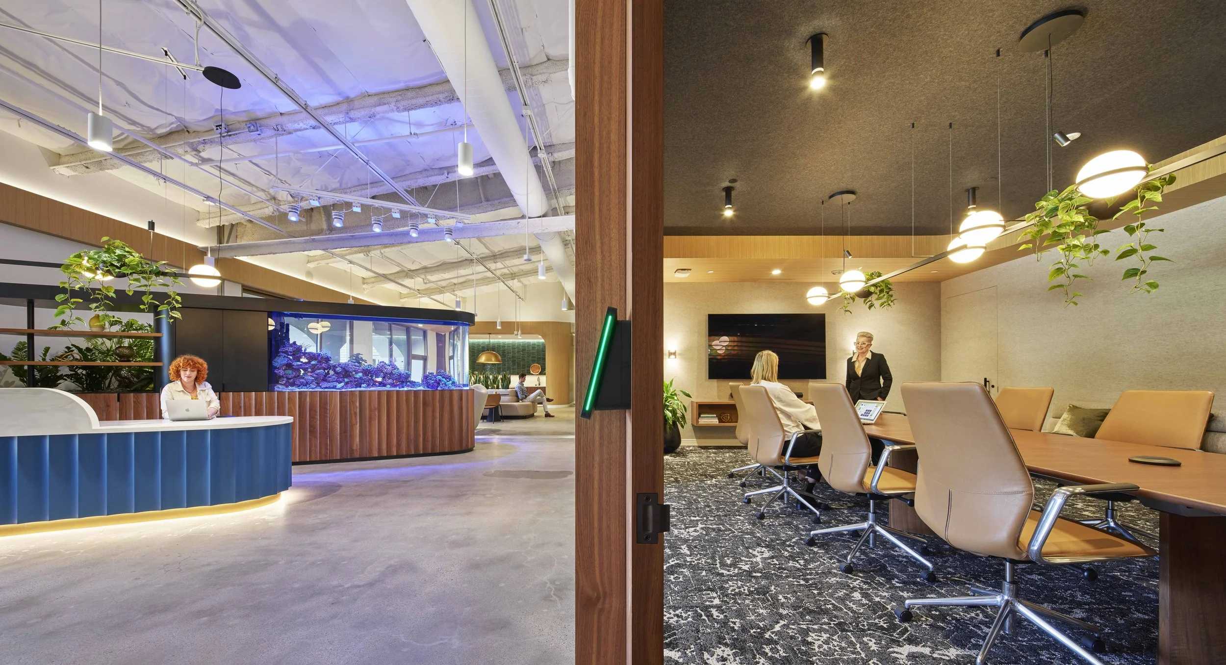 As with any project involving varying visions for the space, their constant communication and professionalism allowed them and us to balance a wide array of opinions and make the design work for everyone. Having a saltwater aquarium in the office has always been my dream, and they even managed to incorporate it without compromising the design and usability of the space. The aquarium has become the crown jewel of the space!